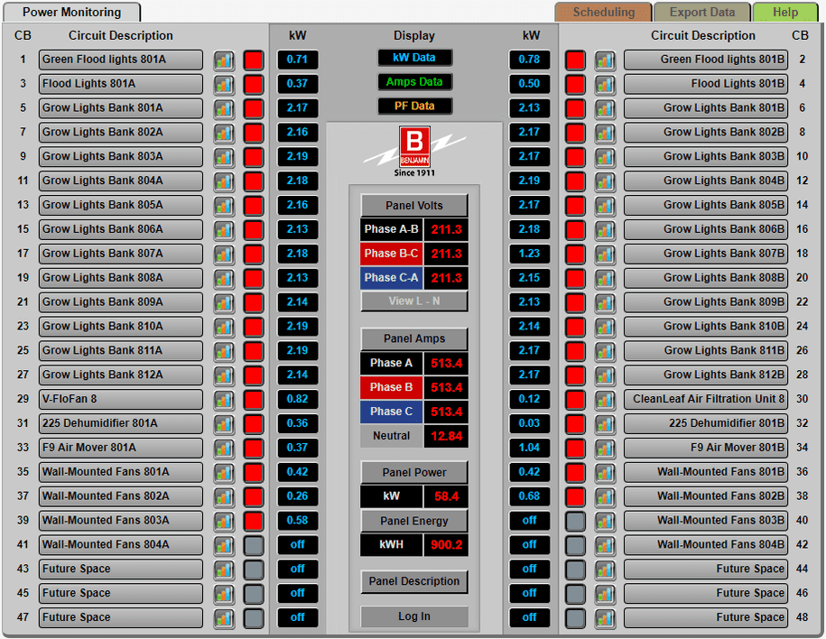 Benjamin Smart Power utilizes power and energy information to help make better decisions. Power is one of the largest commodities of the growing environment so it just makes sense to implement these details to better optimize this environment.